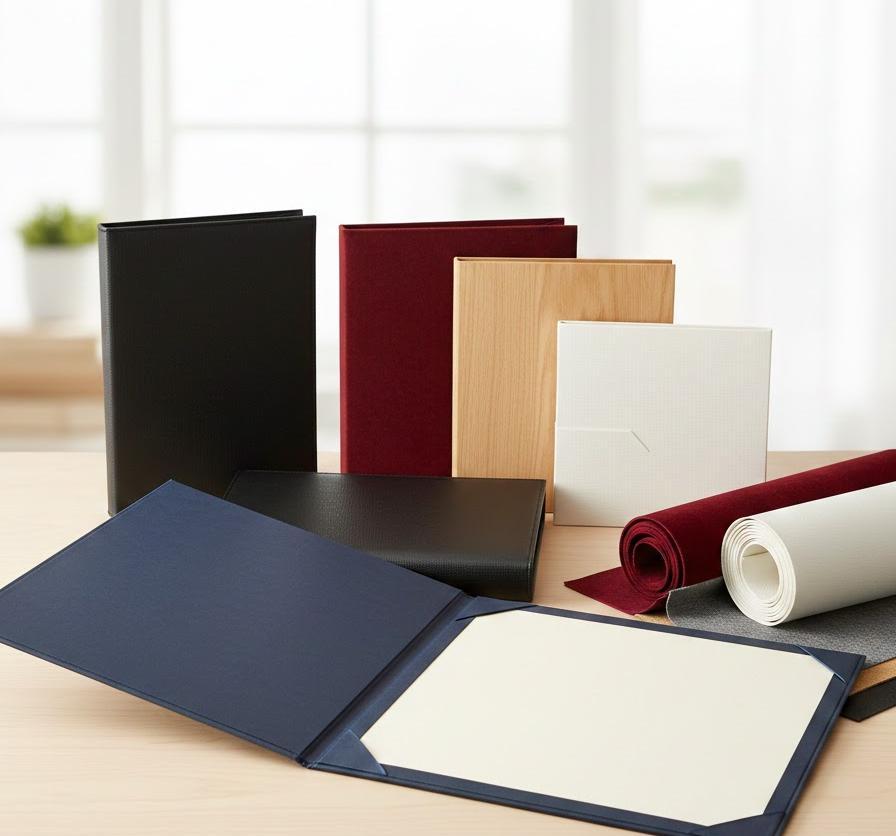 布製、特にスエード調の素材は、しっとりとした手触りと深みのある発色が特徴で、伝統的な卒業式や表彰式の定番として君臨しています。光を吸収する性質があるため、写真撮影の際にも反射が少なく、式典の厳かな雰囲気を壊すことがありません。ウーペ(織り生地)素材も、その細やかな網目模様が知的で上品な印象を与え、多くの教育機関で採用されています。これらの布素材は、金箔押しとの相性が非常に良く、校章や団体名を入れた際に際立つ美しさを発揮します。手に馴染む感覚は、努力が形になった時の喜びをより一層深いものにしてくれるはずです。ただし、湿気や埃には敏感なため、保管環境には少しの配慮が求められる側面も持ち合わせています。