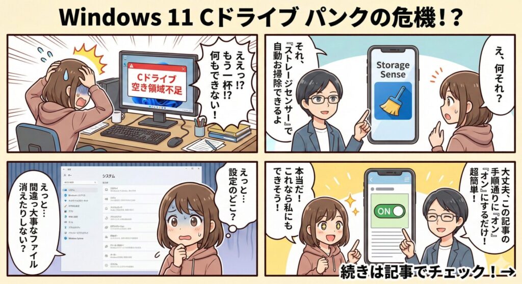 「毎日掃除をするのは面倒だ」と感じるのも、忙しい現代人にとっては自然な感情ですよね。Windows 11には、ユーザーに代わって不要なファイルを自動で判別し、定期的に処分してくれる賢い機能が備わっています。これまでは手動で行っていた作業をOSに任せることで、二度と容量不足の警告に怯える必要がなくなるかもしれません。これは時間の節約にも繋がります。便利な機能は積極的に使いましょう。